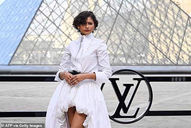Zendaya ha sfoggiato una “fede nuziale” dorata mentre guidava le star che arrivavano alla sfilata della settimana della moda di Parigi di Louis Vuitton martedì.