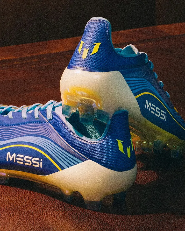 Capovolgili e la piastra gialla sfuma nel bianco attraverso un’elegante sfumatura: un design che strizza l’occhio alla velocità, all’agilità e alla leggerezza che definiva il gioco di Messi.