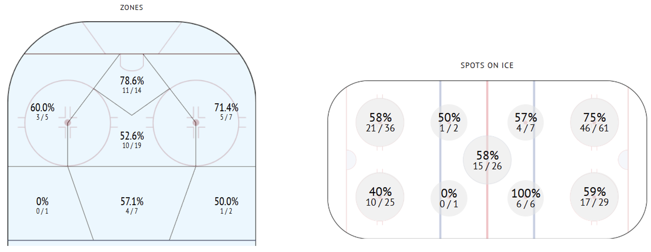 Parte del loro processo avrebbe comportato l’approfondimento dei dettagli del gioco di Castagna. Per illustrare alcune delle complessità affidabili del suo gioco in generale, ecco i suoi parametri di tiro (grafico a sinistra) insieme alla sua percentuale di successo negli ingaggi (grafico a destra).