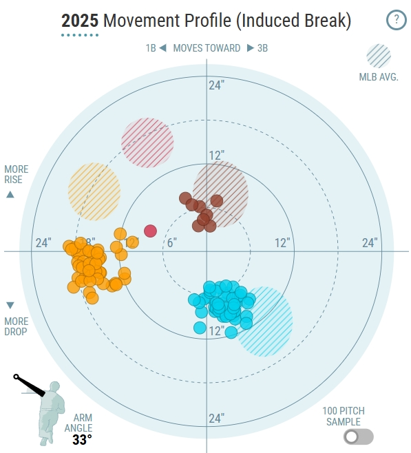 Entrambi i lanciatori hanno una lacuna nel loro arsenale che questi tiri potrebbero teoricamente colmare. Little potrebbe usare qualcosa che abbia un movimento significativo sul lato del guanto per controbilanciare il suo piombino (mostrato in arancione sotto):
