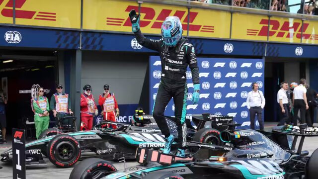 Son coéquipier britannico Lewis Hamilton a dû, lui, se contenter de la septième place, derrière les deux McLaren du héros native Oscar Piastri et du détenteur du titre anglais Lando Norris.