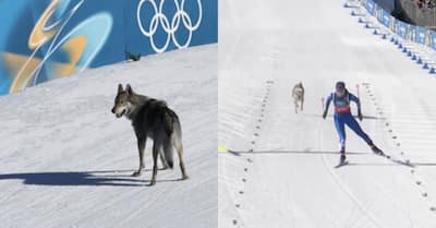 Le superbe toutou – qui serait un chien-loup tchécoslovaque, selon le réseau NPR – a couru derrière la Grecque Konstantina Charalampidou et la Croate Tena Hadzic quand ces dernières ont rallié l’arrivée.