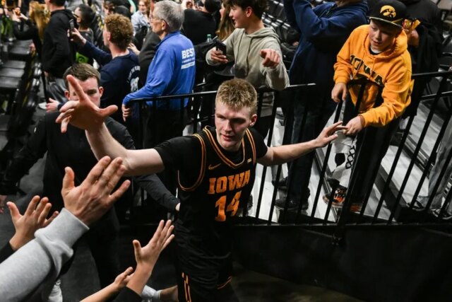 Cooper Koch ne ha aggiunti 10 per gli Hawkeyes (19-7, 9-6 Huge Ten), che hanno superato 17 tiri su 51 dal campo ottenendo la prima vittoria su una squadra classificata dal 2024. L’Iowa si è aiutato affondando 17 tiri fallosi su 18, di cui tre di Stirtz con 36,1 secondi rimasti che gli hanno dato un vantaggio di 53-47.