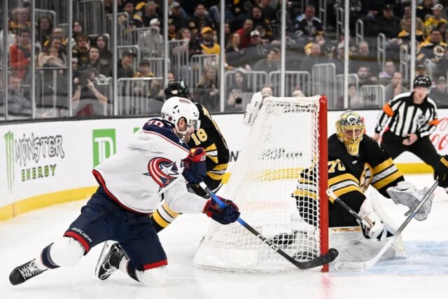 I Boston Bruins hanno recuperato un gol di svantaggio iniziale con tre gol consecutivi e hanno resistito fino a sconfiggere i Columbus Blue Jackets in visita per 4-2 nel primo incontro stagionale delle squadre giovedì sera.