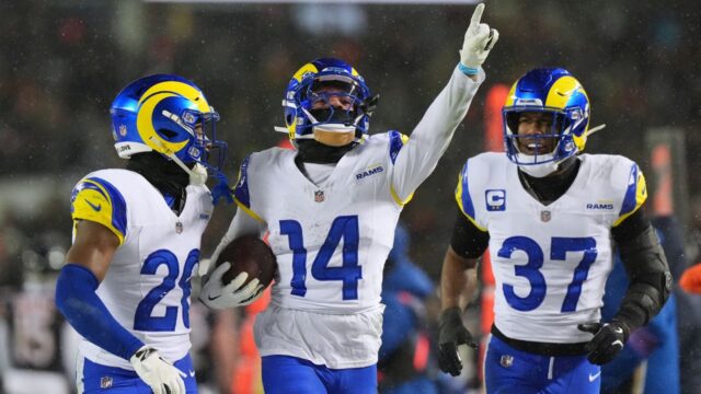 Stafford ha condotto un landing da 91 yard nel quarto quarto, con Kyren Williams che ha segnato da 5 per dare ai Rams un vantaggio di 17-10 con 8:50 rimanenti. Nacua ha mantenuto il possesso nel gioco precedente con una corsa di 2 yard su quarto e 5.