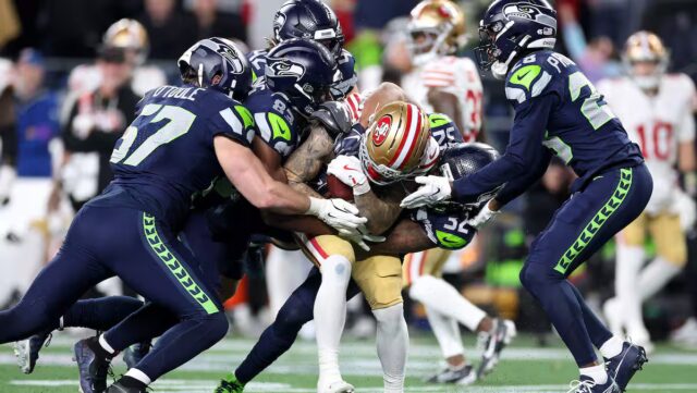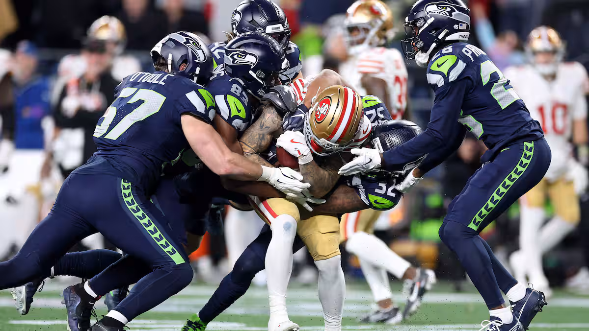In difesa, i Seahawks sono dominanti, a immagine della loro stagione. Ils ont provoqué tre revirements et même si le quart-arrière des 49ers, Brock Purdy, n’a encaissé que deux sacs du quart, il s’est retrouvé 13 fois sous pression.