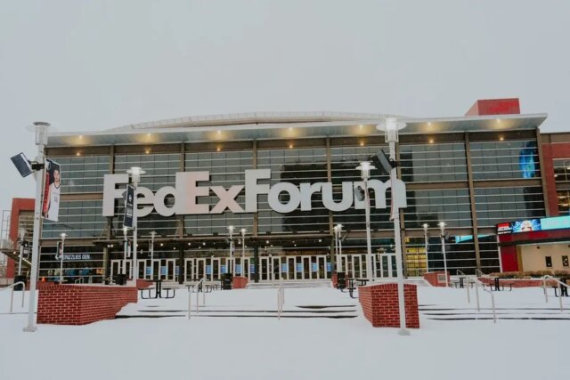 FedExForum è stato visto nel centro di Memphis il 24 gennaio 2026, dopo che una tempesta invernale ha portato neve, nevischio e ghiaccio nel centro-sud. Si prevedeva che l’esplosione invernale continuasse fino al 26 gennaio.
