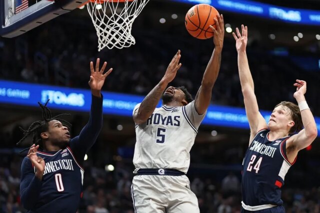 Georgetown ha preso il possesso sotto 63-60 a 32 secondi dalla effective dopo che l’UConn ha sbagliato 3 tiri liberi su 4, ma Lewis ha mancato una tripla dalla parte superiore della chiave a 14 secondi dalla effective.