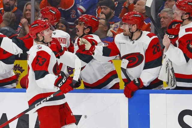 Jackson Blake ha segnato due gol nel terzo periodo e i Carolina Hurricanes hanno sconfitto gli Oilers 6-3 a Edmonton venerdì sera.