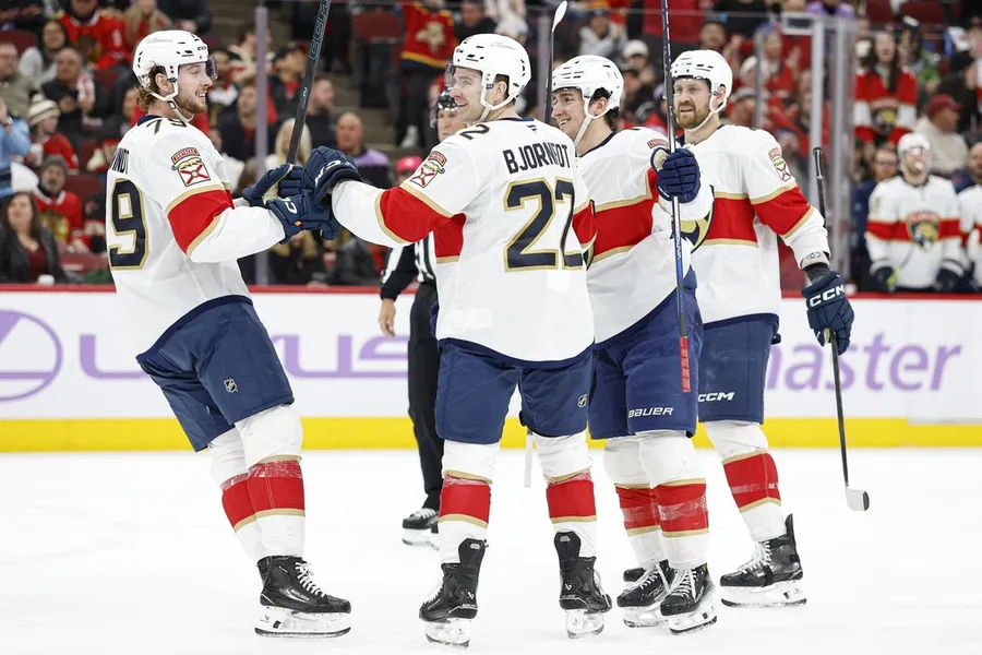 Tobias Bjornfot ha segnato una doppietta aiutando i Florida Panthers in visita a vincere 5-1 contro i Chicago Blackhawks domenica.