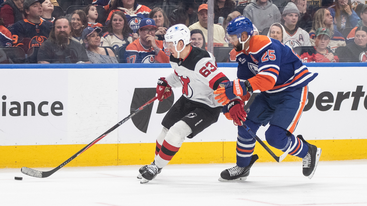 I Devils hanno riguadagnato il comando un minuto e mezzo dopo che Edmonton aveva pareggiato la partita per 1-1 sorprendendo gli Oilers con un brutto cambio e Glass ha battuto Jarry in modo netto sulla stecca per il suo 11esimo gol stagionale.