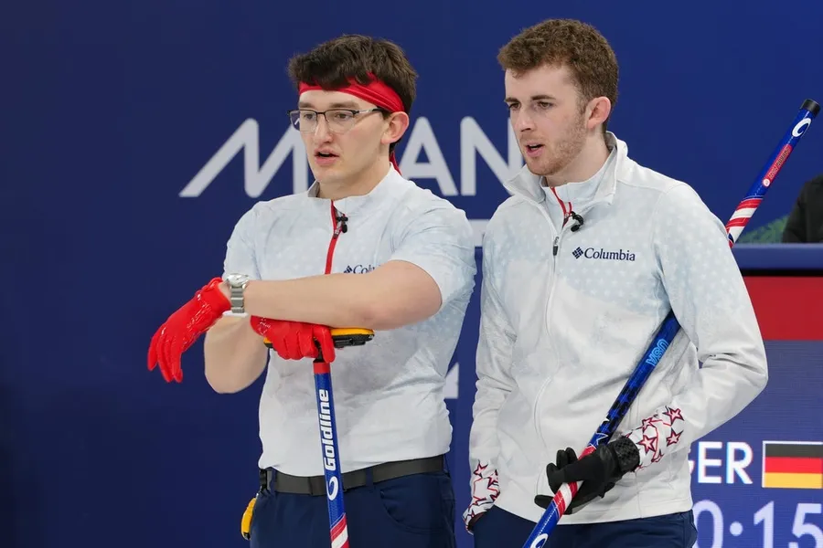 La Svezia di Niklas Edin, che vinse l’oro a Pechino quattro anni fa, ha faticato a leggere le condizioni del ghiaccio allo Stadio Olimpico di Curling di Cortina mentre perde 8-5 per mano di una giovane squadra statunitense.