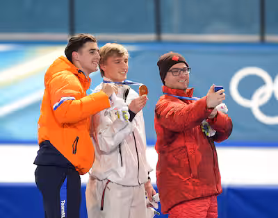 Je patinais à 17 h 23, précisément, et una fois que j’ai eu ma médaille, j’ai fait les entrevues avec les médias, les checks antidopage, poi je suis allé sur le plateau de CBC, où j’ai aussi filmé différentes movies pour des partenaires.