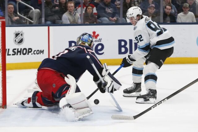 Kerfoot ha portato il Mammoth in vantaggio per 3-2 esattamente tre minuti dall’inizio del terzo periodo quando il suo tiro è andato in rete contro la gamba di un difensore dei Blue Jackets.