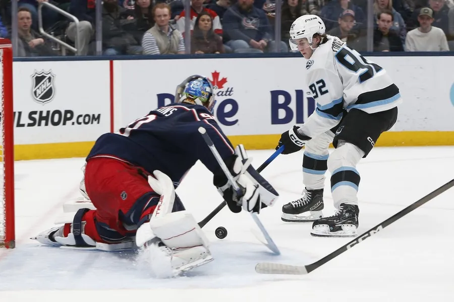 Si pensava che Kent Johnson avesse dato ai Blue Jackets il vantaggio poco meno di otto minuti nel body centrale, ma è stato ribaltato dopo che Utah lo ha sfidato con successo per fuorigioco.
