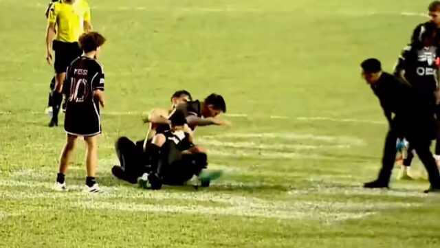 Evidentemente, questi dilettanti di calcio voulaient voir l’Argentin de près, mais l’un d’eux a exagéré, de sorte que le joueur de 38 ans a été tiré au sol dans la cohue.