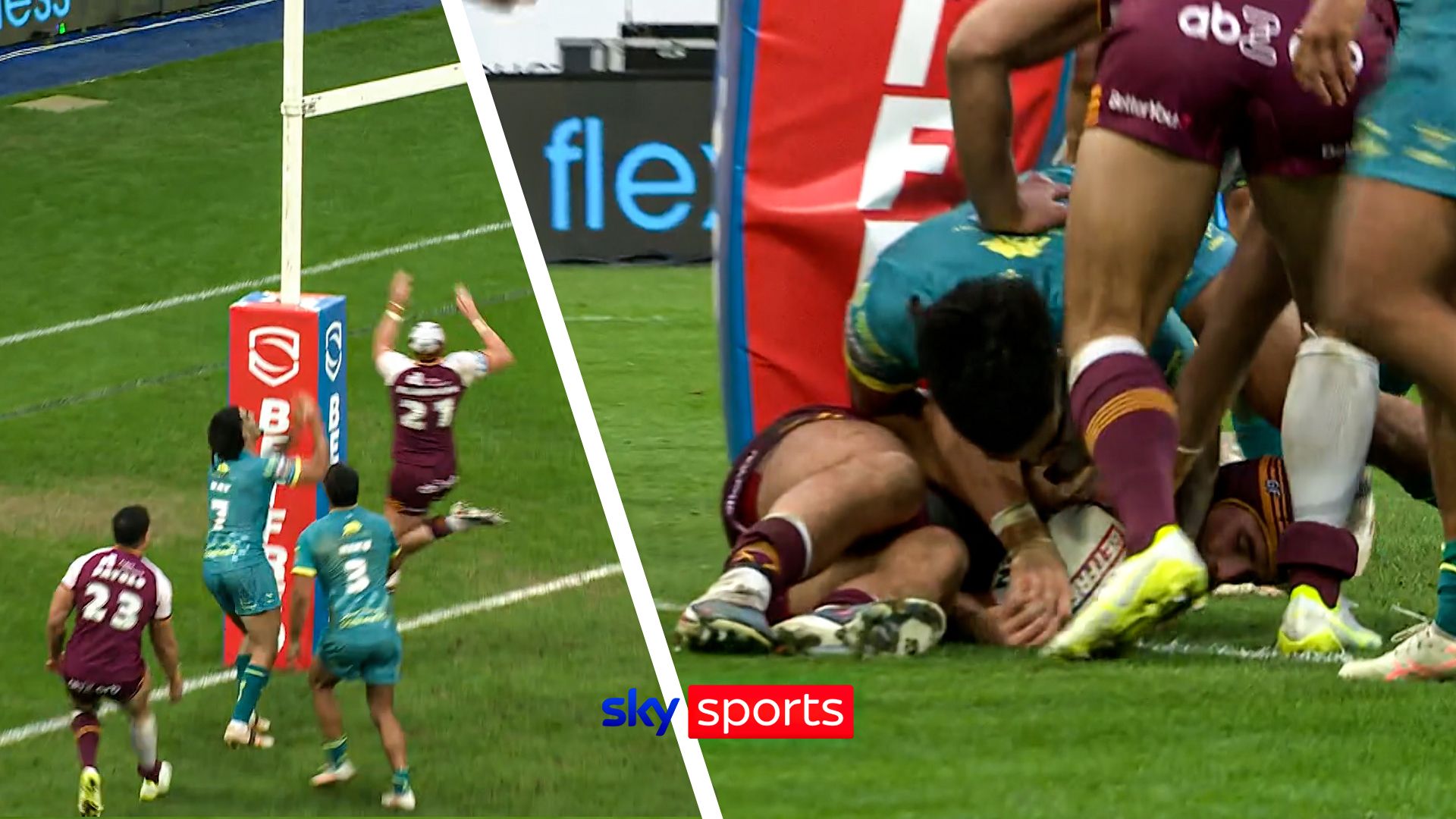 George Flanagan degli Huddersfield Giants si infortuna dopo aver messo “il corpo in gioco” per segnare per palo contro l’Hull KR.