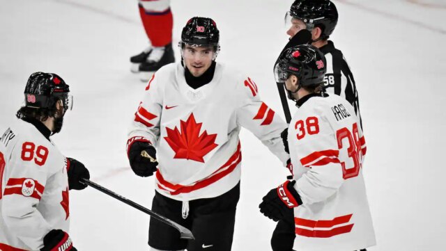Nick Suzuki è retrouve al centro della troisième unité offensiva del Canada, all’allenamento, martedì, alla vigilia del match di quarti di finale di Mercredi faccia a un avversario che resta da determinare.