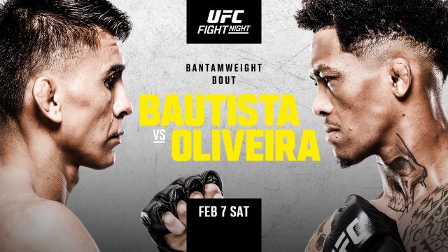 I pesi gallo Mario Bautista e Vinicius Oliveira sono i protagonisti della prima carta UFC Combat Evening dell’anno al Meta Apex di Las Vegas. Guarda l’azione sabato 7 febbraio su Sportsnet 360 e Sportsnet+ con copertura a partire dalle 18:00 ET / 15:00 PT.