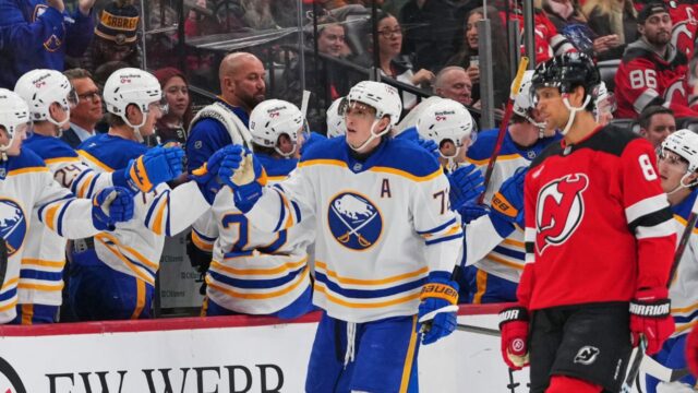 NEWARK, NJ – L’olimpionico statunitense Tage Thompson ha segnato il suo 31esimo gol stagionale e ha aggiunto un help per aiutare i Buffalo Sabres a battere i New Jersey Devils 2-1 nel ritorno in campo della NHL mercoledì sera.