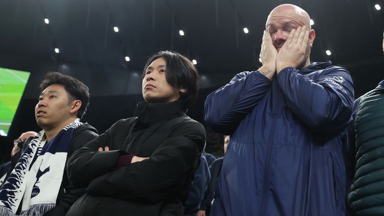 Giovedì ha visto la sua squadra capitolare davanti a un pubblico disperato allo stadio Tottenham Hotspur, subendo tre gol in sette minuti del primo tempo dopo l’espulsione di Micky van de Ven. Alcuni tifosi sono stati visti fuggire da terra prima dell’intervallo.