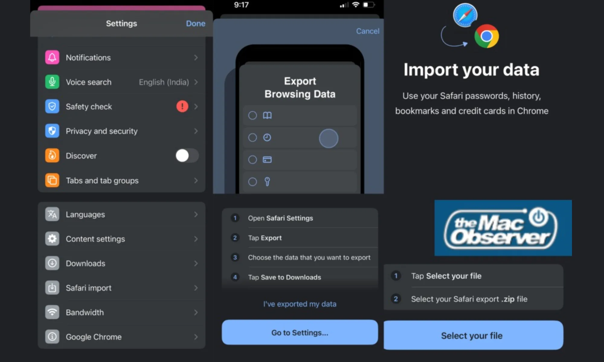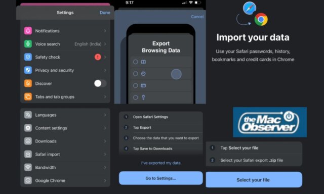 Selezionando l’opzione “Importazione Safari” si apre un tutorial che guida gli utenti attraverso il processo di esportazione di password salvate, cronologia del browser, segnalibri, informazioni di pagamento ed estensioni da Safari come file ZIP. Una volta fatto ciò, gli utenti possono selezionare il file di importazione in Chrome e rivedere tutti i dati inclusi prima di premere il pulsante “Importa” per completare il processo.