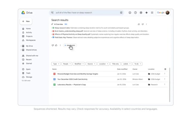 La panoramica AI embrace anche un pulsante Chiedi a Gemini che consente agli utenti di porre rapidamente domande di follow-up, come richiedere un riepilogo del contenuto dei file. La funzionalità può anche prendere in considerazione le informazioni rilevanti provenienti dalle e-mail, dal calendario e dal Internet degli utenti, oltre a ciò che è già presente nei documenti archiviati in Drive.