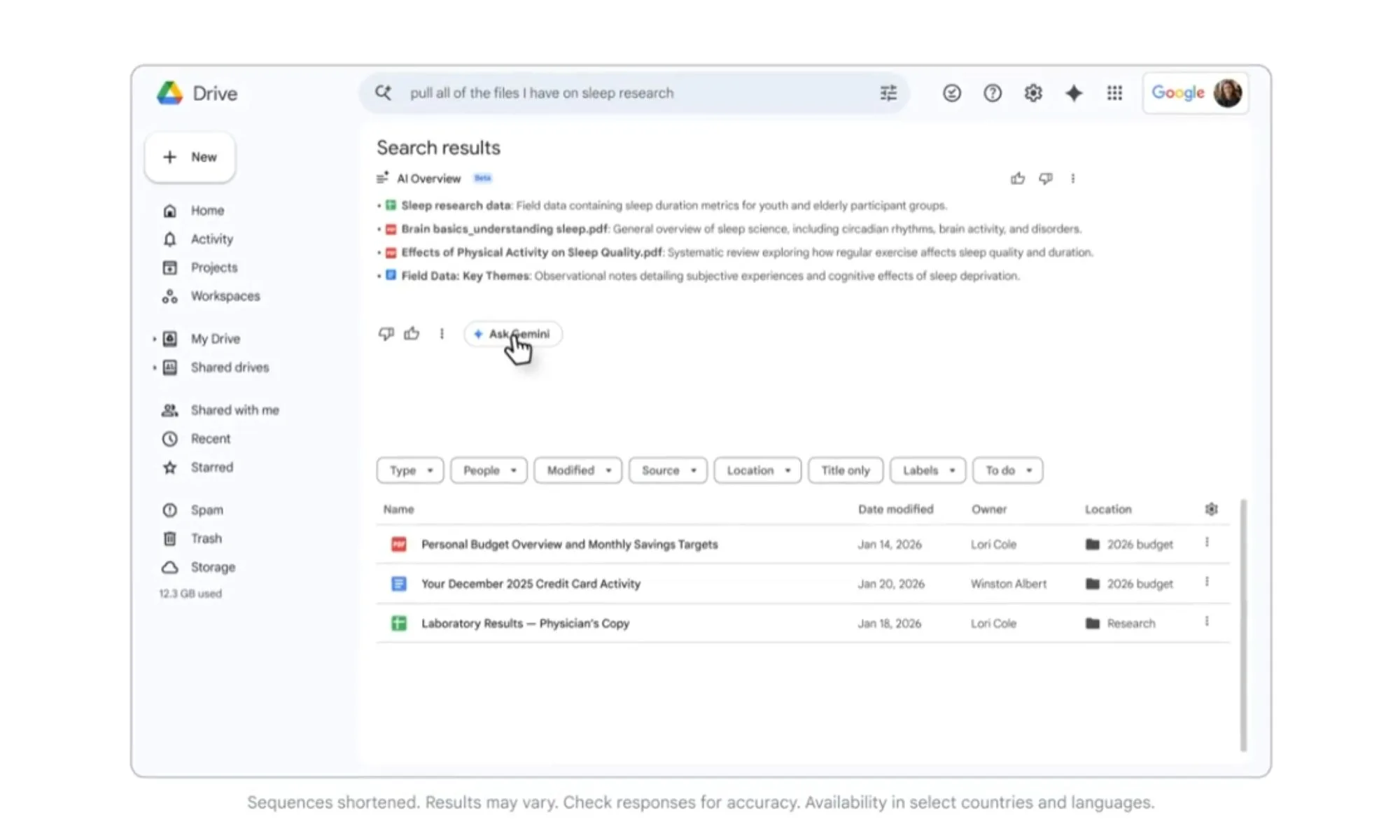 Google dice quando effettui una ricerca su Google Drive, Gemini ora fornirà una panoramica dell’intelligenza artificiale nella parte superiore dei risultati evidenziando i dettagli chiave trovati nei documenti correlati. In un esempio, Google mostra come quando un utente chiede a Gemini di “estrarre tutti i file che ho sulla ricerca sul sonno”, visualizza tutti i file rilevanti nella Panoramica AI con brevi descrizioni accanto a ciascun file che delineano le informazioni incluse.