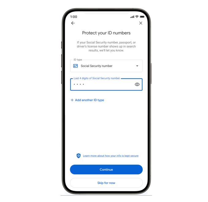 Lo strumento “Risultati su di te” consente già agli utenti di rimuovere i risultati di ricerca contenenti il ​​proprio numero di telefono, indirizzo e-mail o indirizzo di casa e ora può anche essere utilizzato per richiedere la rimozione di risultati che includono informazioni come patente di guida, passaporto o numero di previdenza sociale, ha affermato la società nell’aggiornamento di martedì.