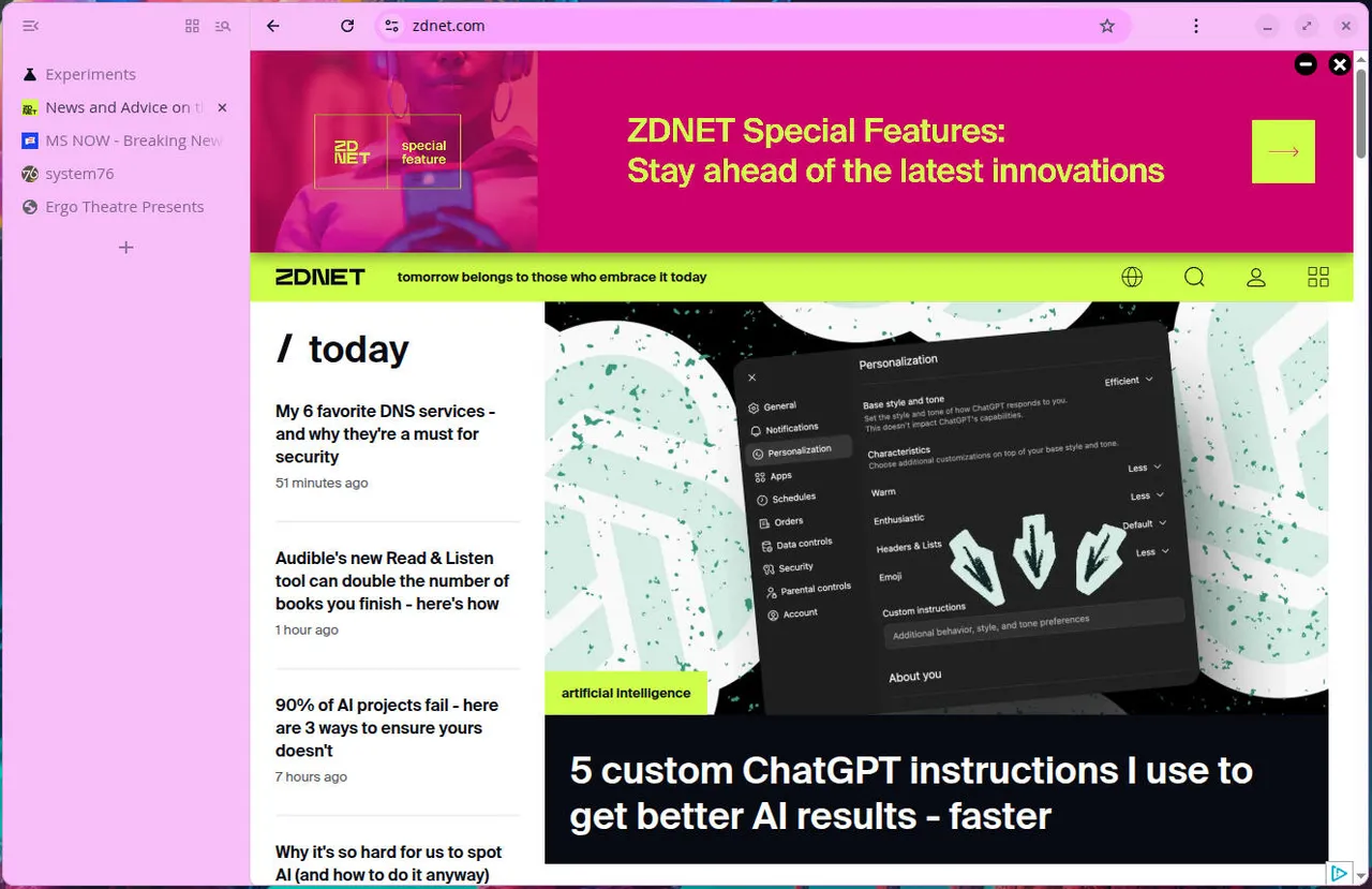 La tabstrip dovrebbe spostarsi automaticamente dall’alto verso il lato sinistro. Ora puoi trascinare e rilasciare le schede nell’ordine che preferisci, creare gruppi di schede, personalizzare gruppi di schede (colore e nome) e persino ridurre a icona le schede verticali in una barra laterale più pulita.