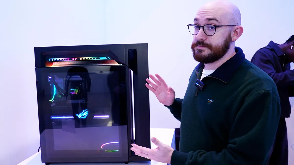 Sfido qualsiasi produttore di PC al CES 2026 a proporre un design desktop più accattivante rispetto all’Asus ROG G1000, che viene fornito con oltraggiosi ologrammi danzanti sui finestrini laterali e anteriori. Controlla!