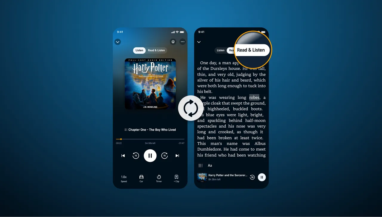Leggi e ascolta sembra simile alla funzione Testi di Spotify, che visualizza i testi in stile karaoke mentre un utente ascolta una canzone. Gli utenti udibili possono seguire il testo sincronizzato ed evidenziato mentre ascoltano un audiolibro. Gli utenti Audible devono possedere sia l’audiolibro che l’e-book per accedere alla funzione Leggi e ascolta.