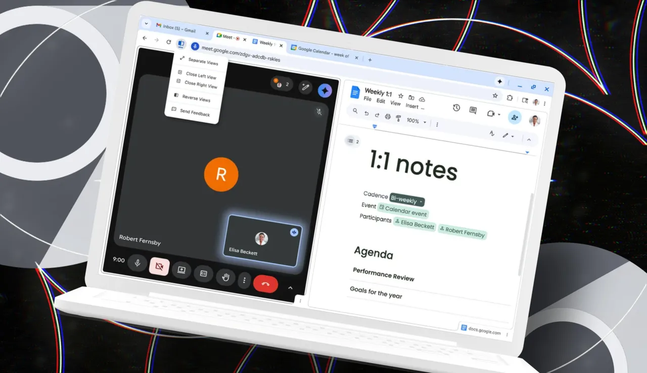 Invece di rimbalzare avanti e indietro tra le schede, avrai tutte le informazioni di cui hai bisogno in un’unica visualizzazione. Google ha offerto alcuni esempi di come potresti utilizzare questa funzione, tra cui prendere appunti su un video, valutare documenti durante l’inserimento di dati in un foglio di calcolo e fare riferimento a un documento durante la codifica.