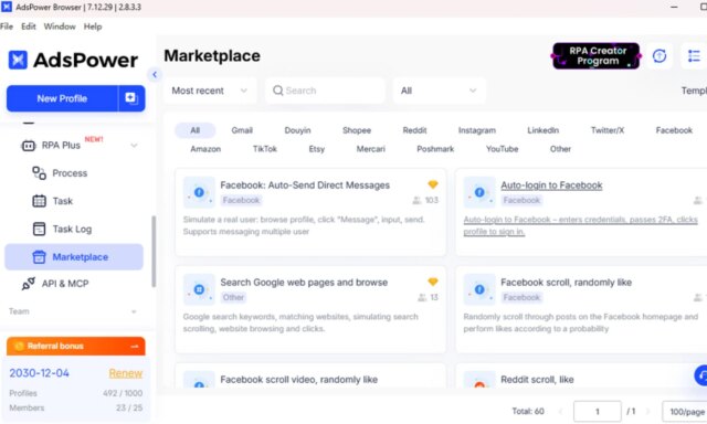 Poiché il lavoro diventa sempre più frammentato e i professionisti sono tenuti a gestire più account su più piattaforme, la necessità di una base stabile, sicura e scalabile diventa fondamentale. AdsPower affronta direttamente questa sfida fornendo ai group gli strumenti per automatizzare, gestire e proteggere le proprie operazioni in un unico ecosistema unificato.