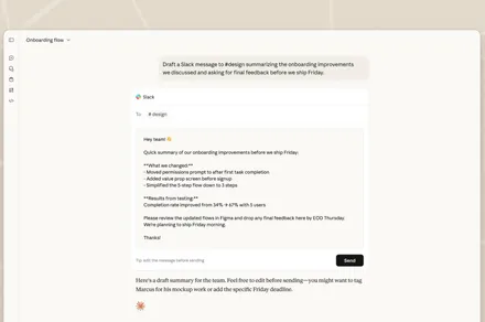 Anthropic ha appena trasformato il suo chatbot AI Claude in un vero e proprio hub di produttività portando app interattive direttamente nella chat. Gli utenti ora possono eseguire azioni all’interno di app come Slack, Figma, Asana, Canva, Field, Clay e altre senza dover cambiare finestra.