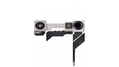 L’immagine mostra quello che sembra essere un gruppo di sensori Face ID trapelato composto da tre moduli distinti montati su un unico cavo flessibile: un illuminatore a infrarossi a sinistra e un proiettore a punti centrato con una fotocamera a infrarossi a destra.