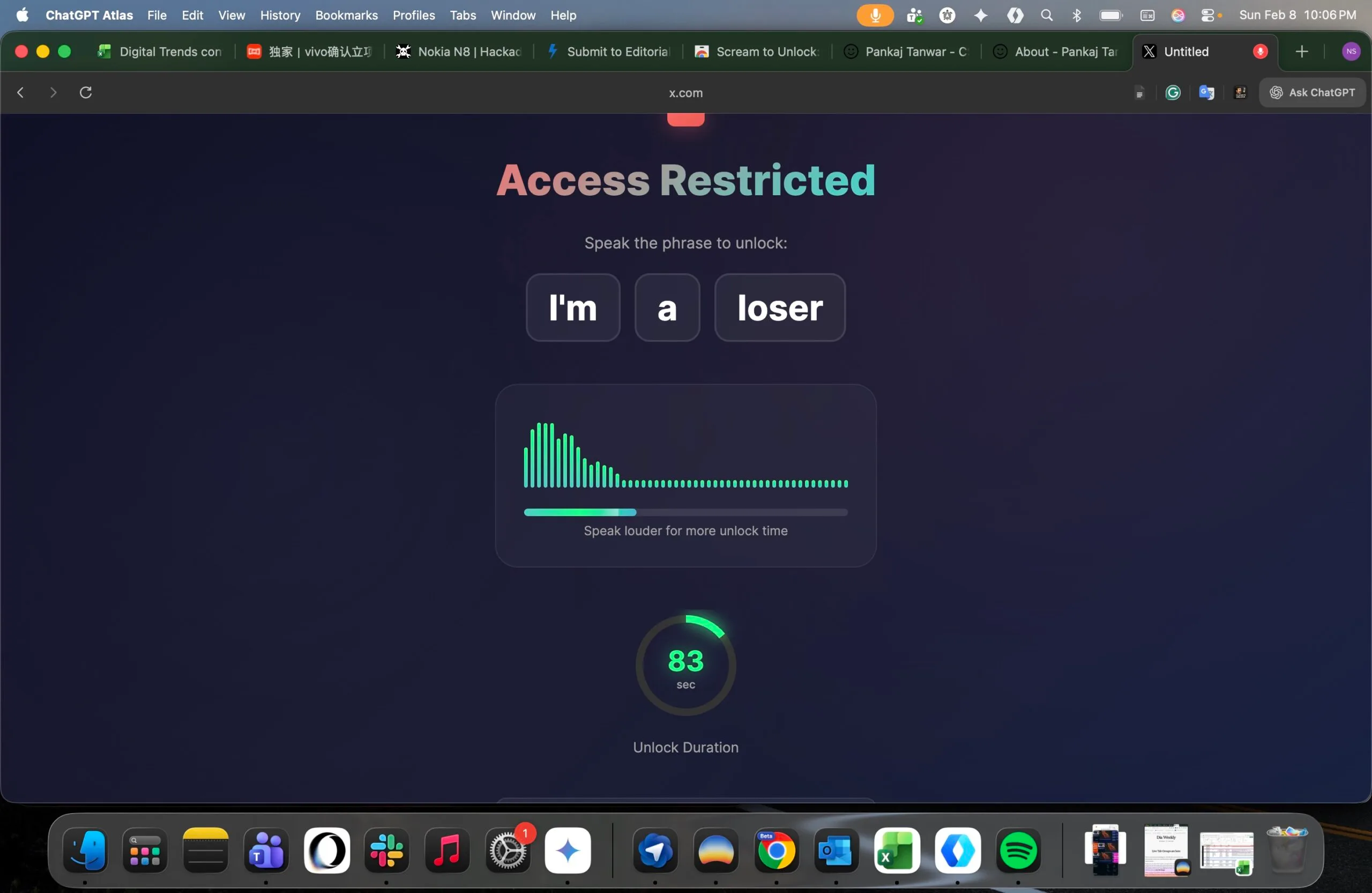 Per quanto riguarda l’estensione del browser “Scream to Unlock”, beh, avevo un disperato bisogno di una soluzione come questa. Visito X e Reddit per ricerche e raccolta di notizie, ma spesso finisco per perdere troppo tempo lasciandomi distrarre da submit casuali e tane di coniglio. Per fortuna, il poco onore che mi è rimasto mi impedisce di urlare al PC e di svegliare il mio gatto.