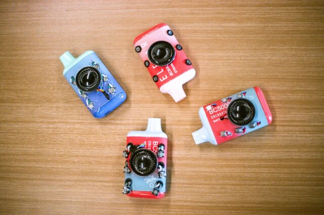 Il sintetizzatore Vape è un progetto creato da un gruppo di creatori di New York Metropolis che smontano i vaporizzatori di nicotina Elf Bar usati e li trasformano in strumenti musicali digitali. Il dispositivo risultante sembra ancora una cartuccia per vaporizzatore, ma con un piccolo altoparlante annidato in mezzo a una serie di luci e pulsanti. Per riprodurlo, ci metti sopra la bocca e inspiri il respiro verso l’interno, come faresti con uno svapo.
