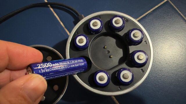 Innanzitutto, può caricare fino a otto batterie contemporaneamente. Basta inserire una batteria AA o AAA (ioni di litio o idruro di nichel metallico) in uno qualsiasi degli slot liberi – e sì, può gestire sia batterie AA che AAA, quindi non devi preoccuparti di cosa va dove – inserisci la copertura magnetica e by way of.