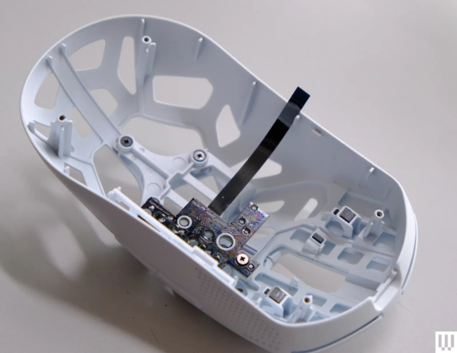 In realtà ho rotto una di queste clip di plastica durante lo smontaggio del mouse in fibra di carbonio. Anche se sono sicuro che esista un modo per smontarlo che eviti la maggior parte dei rischi, dimostra che può succedere facilmente, anche a qualcuno con molta esperienza nella sezione di topi. Sono riuscito a incollare di nuovo insieme la sezione rotta senza alcun problema. Durante il take a look at del mouse con una clip rotta, ho riscontrato che sembrava più traballante di prima e questa traballanza è scomparsa dopo la riparazione.