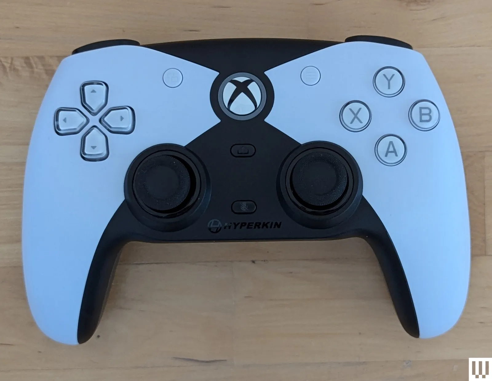 La differenza che colpisce immediatamente è che il prodotto Hyperkin scambia il tipico approccio Xbox delle levette asimmetriche con il structure orizzontale della PlayStation. Separa anche il D-pad (è un pezzo unico all’interno del pad, ma divide le sue direzioni cardinali in modo che ognuno sembri essere il proprio pulsante), mentre i pulsanti frontali ABXY sono leggermente più distanziati. Al posto del touchpad del DualSense, abbiamo i pulsanti Residence, Menu, Visualizzazione e Condividi di Xbox, tutti integrati in modo piuttosto intelligente. Un anello LED attorno al pulsante Residence fa quasi eco alle luci che corrono lungo la periferia del touchpad del DualSense, anche se in realtà è più un’inversione del normale controller Xbox, dove il pulsante Residence stesso si illumina.