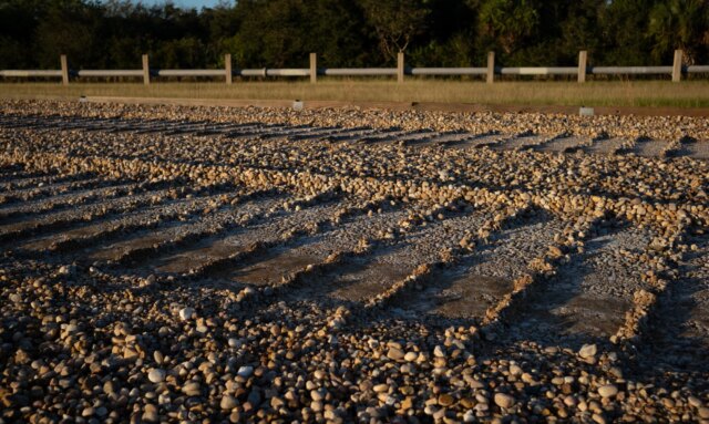 Il trasportatore cingolato della NASA lascia sulla sua scia rocce frantumate mentre trasporta lo House Launch System sulla sua piattaforma di lancio il 4 novembre 2022.