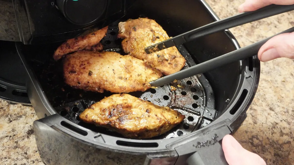 Ali di pollo, cosce ed eventuali pezzi con osso sono candidati perfetti per la friggitrice advert aria. I petti di pollo disossati non hanno molto grasso e si seccano facilmente. Proteggili con un po’ di pastella di uova e pangrattato e starai bene, ma i petti di pollo nudi cotti nella friggitrice spesso emergono asciutti o gommosi.