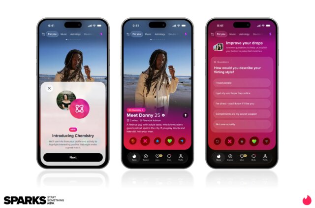 Innanzitutto, c’è Chemistry, un sensale basato sull’intelligenza artificiale che è già stato testato in Australia e Nuova Zelanda, ma viene lanciato oggi negli Stati Uniti e in Canada.