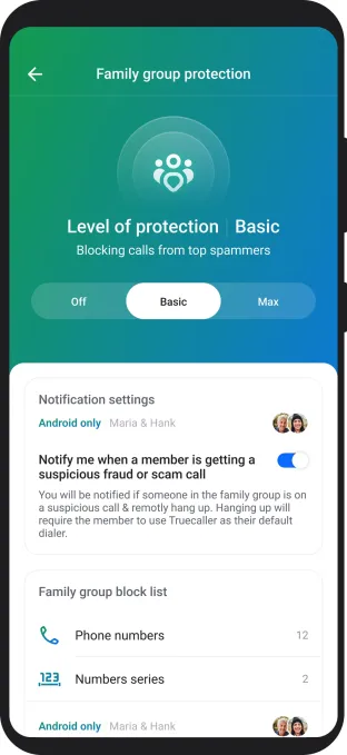 Con questa funzionalità, il membro esperto di tecnologia di una famiglia o di un gruppo di amici può diventare l’amministratore di un gruppo composto da un massimo di cinque membri. Una volta che gli altri membri si uniscono al gruppo, l’amministratore può ricevere avvisi sulle chiamate potenzialmente fraudolente ricevute da tali membri. Se l’amministratore ritiene che la chiamata possa danneggiare il membro, può anche terminare la chiamata da remoto. Sebbene l’amministratore possa ricevere avvisi per chiamate fraudolente quando un membro utilizza iOS o Android, può terminare le chiamate solo per i membri su Android.