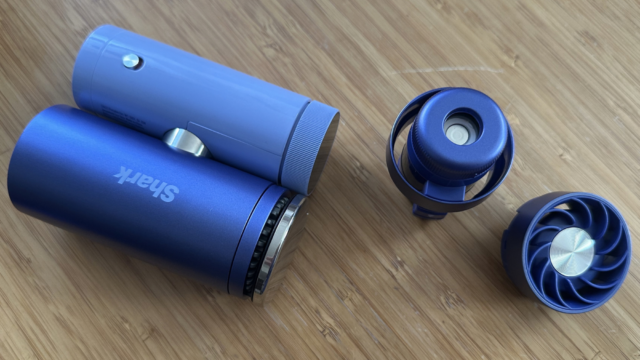ChillPill di Shark è un ventilatore portatile con controlli digitali. Si gira per contorcersi in una comoda presa o per creare un piccolo trespolo, come se fosse un ventilatore da tavolo in miniatura. Ha 10 velocità, che secondo il marchio spingono l’aria fino a 25 piedi. Quando viene portato alla massima velocità, è un dispositivo rumoroso, simile più a un asciugacapelli che a un ventilatore.