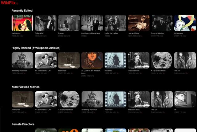 L’arrivo di una nuova tranche di opere d’arte nel pubblico dominio significa cose diverse a persone diversema forse il vantaggio più immediato è che significa che c’è un nuovo elenco di movie classici che puoi guardare gratuitamente. E fortunatamente, c’è una risorsa dedicata specificamente a rendere i movie di pubblico dominio disponibili per la visione on-line: WikiFlixQuale attinge Wikimedia Commons, Web Archive e YouTube e fornisce un luogo conveniente per guardare video da tutte e tre le fonti.